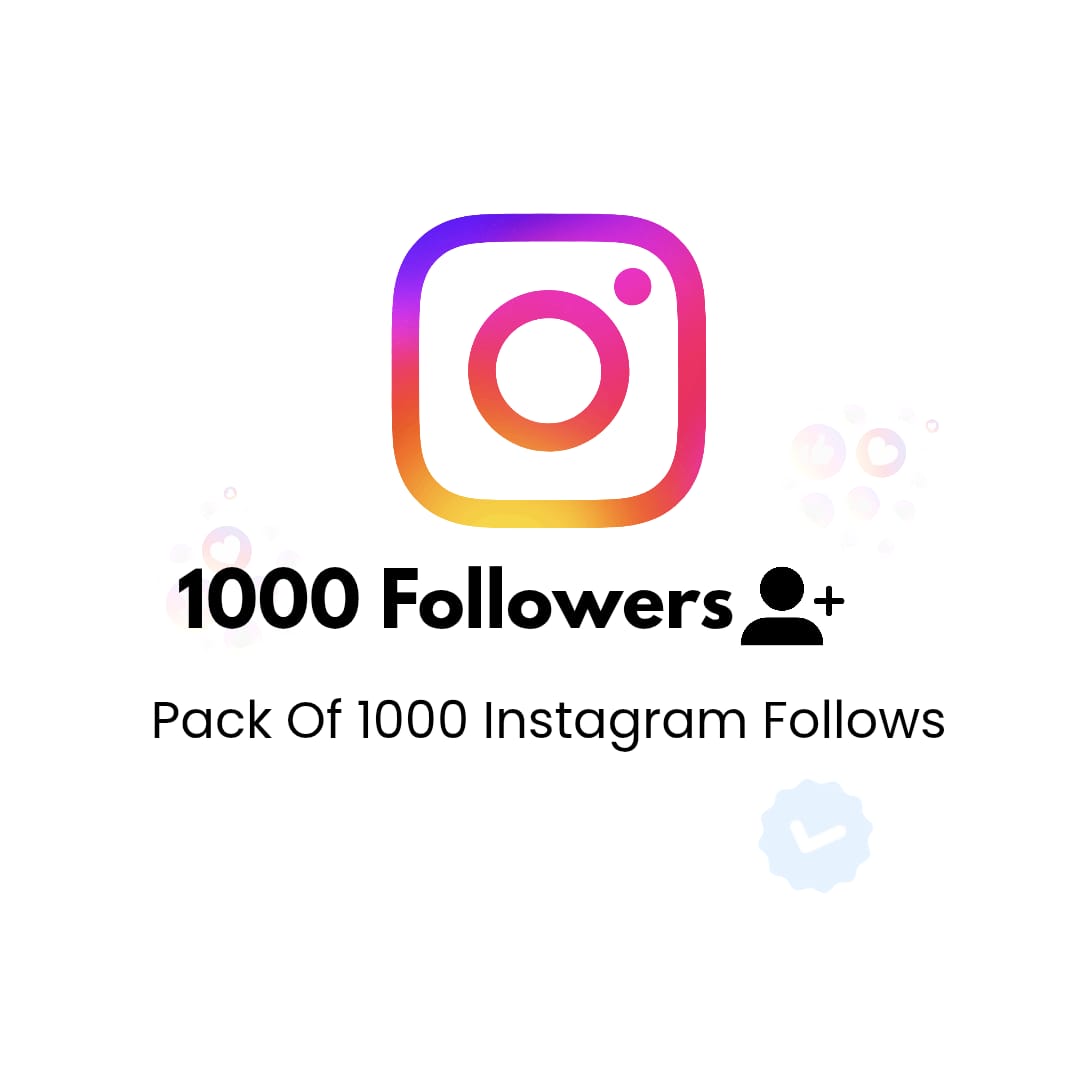 This promotional graphic highlights a specialized service designed to boost social media presence by providing a pack of 1000 Instagram followers. Featuring the iconic Instagram logo and a clean, minimalist design, it serves as a clear call to action for users looking to increase their digital reach and credibility quickly.